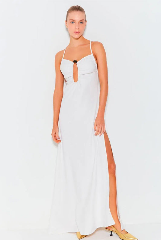 LONG SINGLE FRONT DRESS WITH RING ON THE BUST