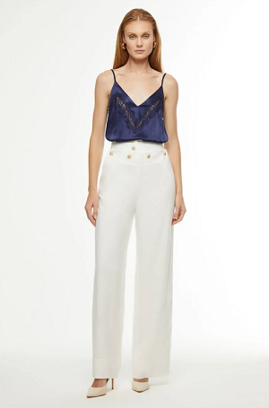 The Lana tank top is made of viscose satin. The piece features loose modeling with lace details on the bust, providing a sophisticated and sensual look. It features thin straps with adjustment, V neckline, scarf hem and topstitched finish. Piece with delicate details, care is recommended when washing.