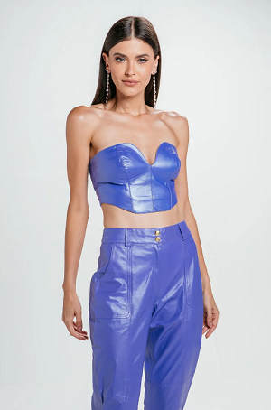 Synonymous with versatility, the AMANDA TOP brings a modern and sexy model! Made from super soft genuine LEATHER and cropped length, it has a cut inspired by the corset trend, giving a more structured fit. The neckline is in a rounded strapless style, lastex stitching and zipper closure at the back. Ideal to combine with high-waisted pieces.